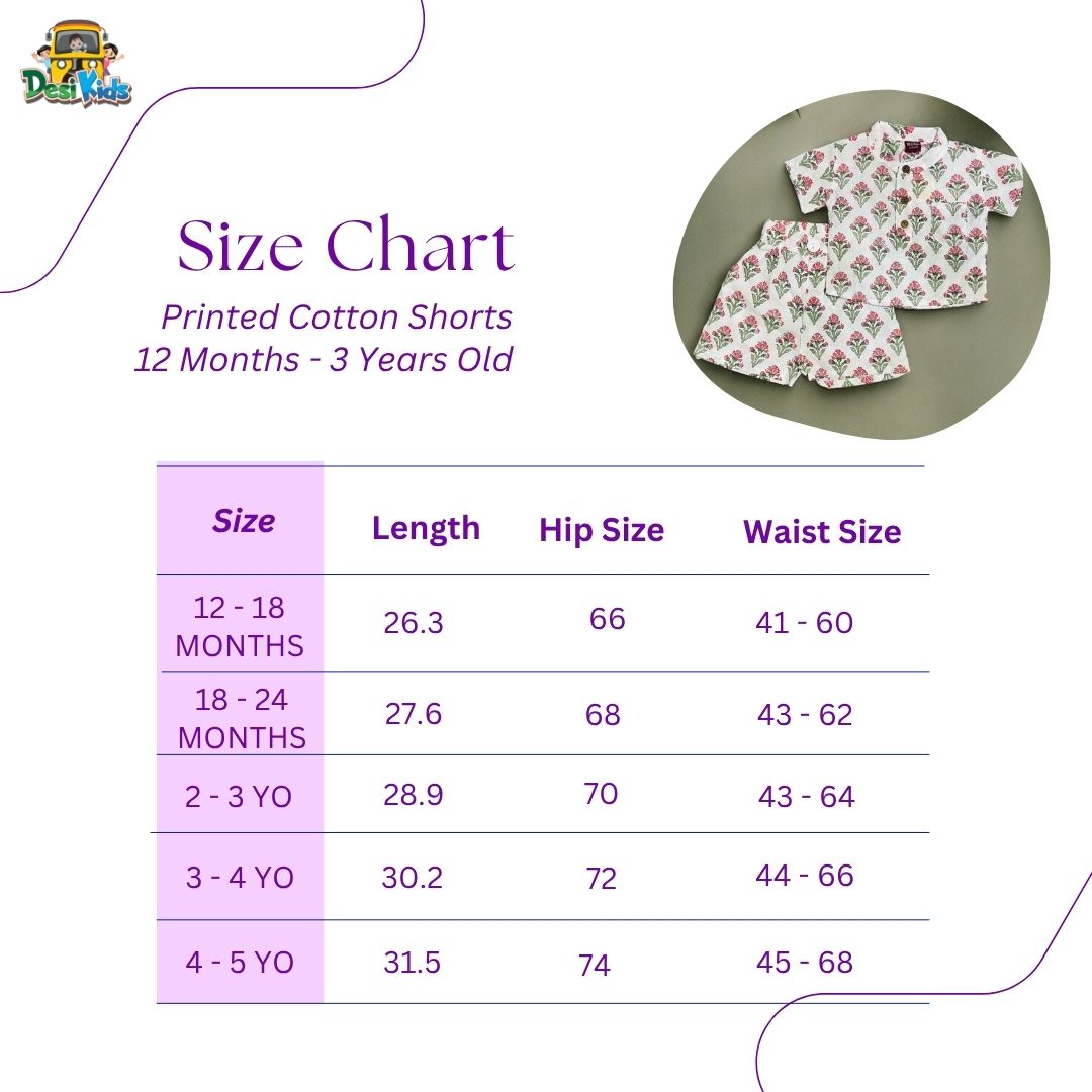The Floral Harmony Shorts are a delightful addition to any young boy's wardrobe. Made from soft, pure cotton, these white shorts feature charming blue and brown endless floral handblock prints that add a touch of whimsy.