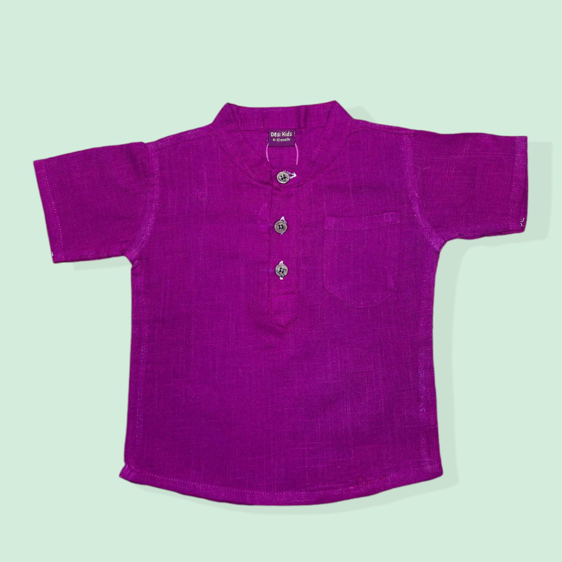 Add a touch of style to your little one’s wardrobe with our plain maroon top, crafted from pure cotton for a soft and comfortable feel. Featuring a trendy mandarin collar, this versatile shirt pairs effortlessly with most of our printed bottoms.